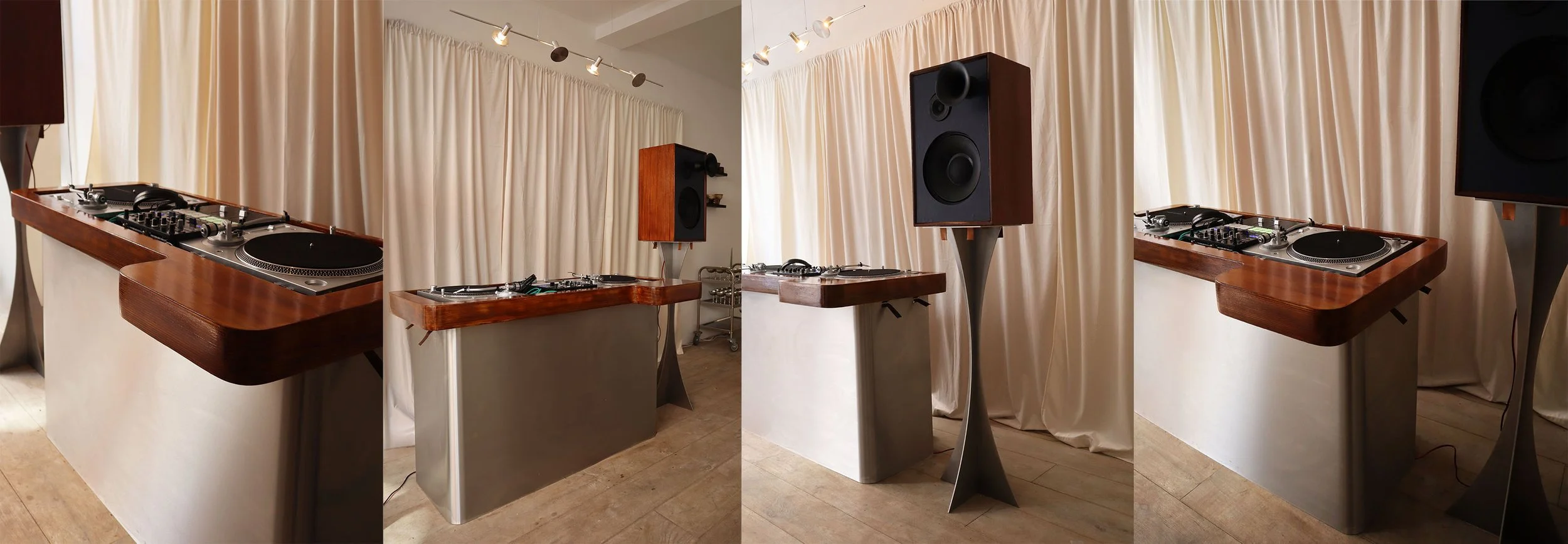 From sculptural, trophy-like speaker stands to an elegantly resolved vinyl turntable, each element is designed to elevate both sound and space. Developed in collaboration with some of London’s most exciting musicians, the collection offers a sophisticated and immersive listening experience.
