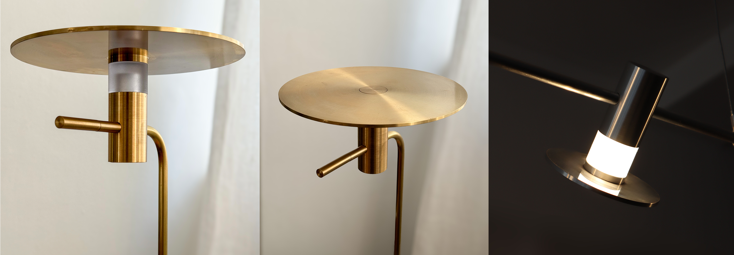 At its core, Lorraine emits a soft yet captivating glow, gently diffused beneath a gracefully composed brass plate. The light, subtle and atmospheric, settles into its surroundings with quiet confidence and poise.