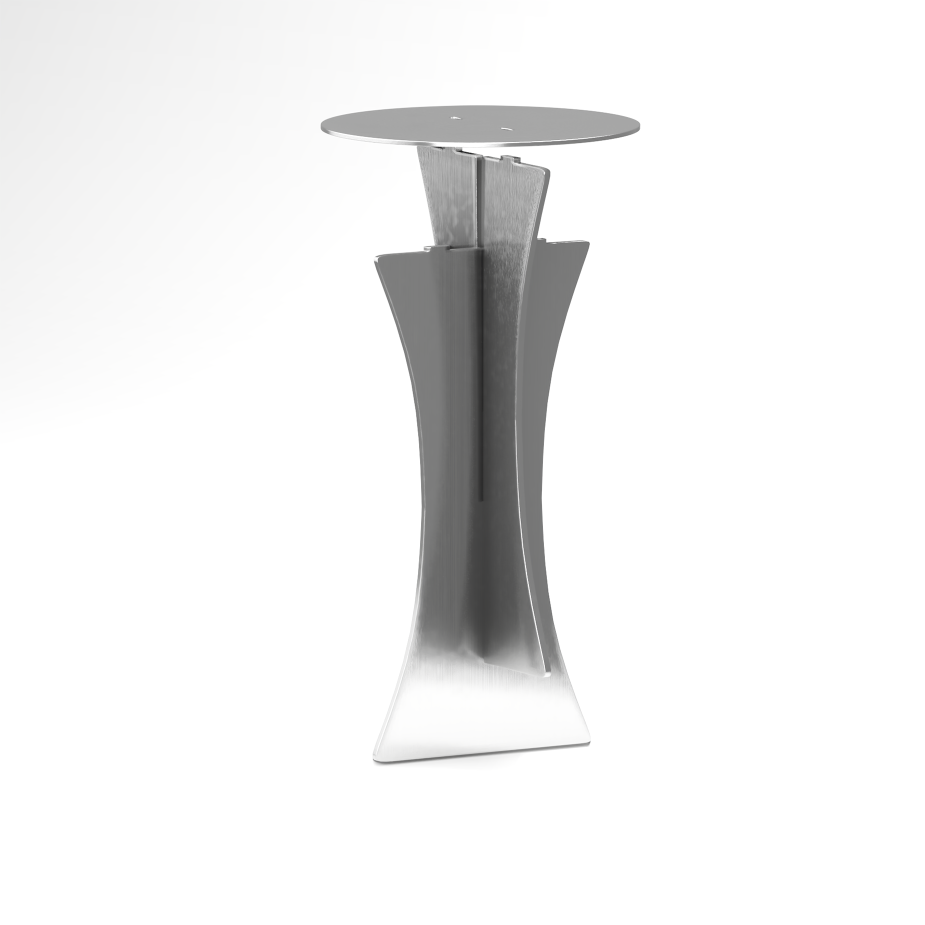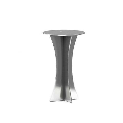 The T-01 stainless steel table is a stunning sculptural piece that is both practical and functional. Created by designer Kwaku Boateng spent ample time crafting interior objects, this piece is a result of his exploration of new materials and processes. It stands proudly upright with a trophy-like appearance and bows gracefully, lending it a regal quality. Made entirely of 4mm stainless steel, this table is comprised of three parts that, when assembled, create a practical, versatile and sturdy piece of furniture. Table T-01 exudes an aura of refined industrial charm. Its raw steel nature imparts a distinct character, bearing minor bumps and scratches that not only add to its unique allure but also contribute to its rugged industrial aesthetic. It can be used as a side table or as a stool, making it perfect for London living where space is at a premium. With its sleek lines and metallic finish, the T-01 Steel Table is a true work of art that is both functional and beautiful. It is the perfect addition to any contemporary home.